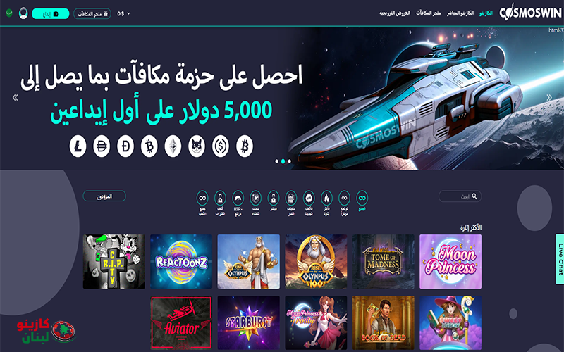 ومع توفيره الدعم باللغة العربية بشكل كامل، ومع وجود مكتبة ألعاب كازينو حديثة ودعم كامل للعملات المشفرة وطرق الدفع الأخرى. فإنّ كازينو كوزموسوين يوفر أفضل الخدمات للاعبي كازينو لبنان.
